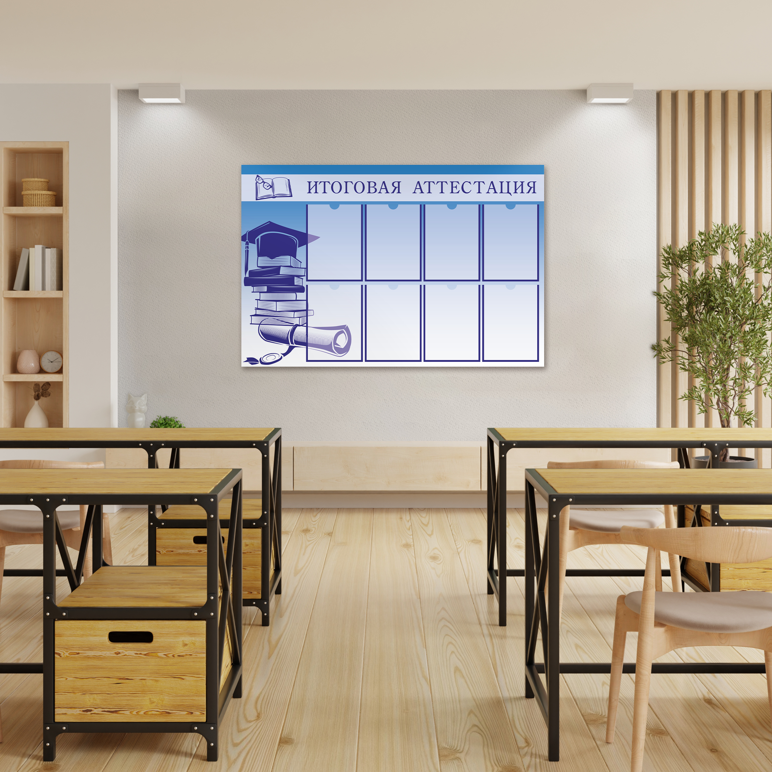 Все стенды изготовлены из легкого ПВХ пластика. Изображение печатается на самоклеящейся плёнке от немецкого производителя.