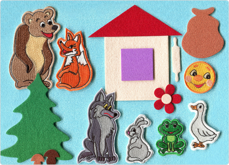 7 вышивных фигурок на липучках