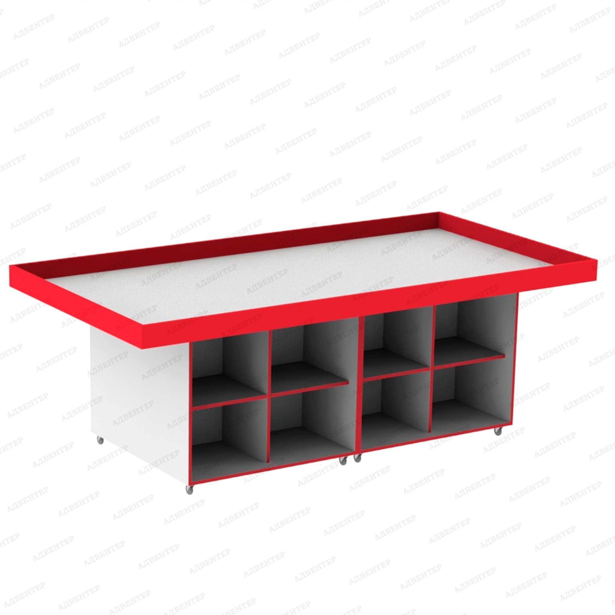 Нижняя часть стола представляет собой закрытую тумбу-хранилище, размером 1800х900х750 мм, из 16-ми ячеек (по 8 на каждой стороне).