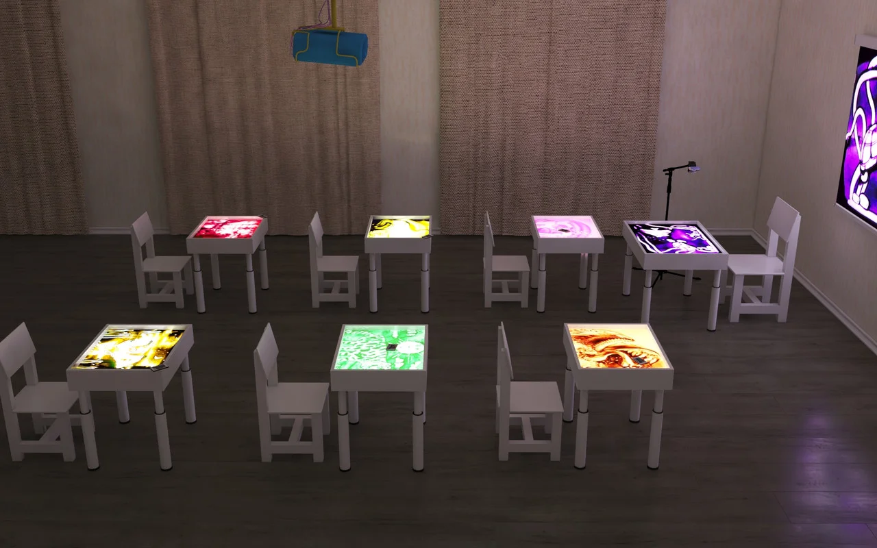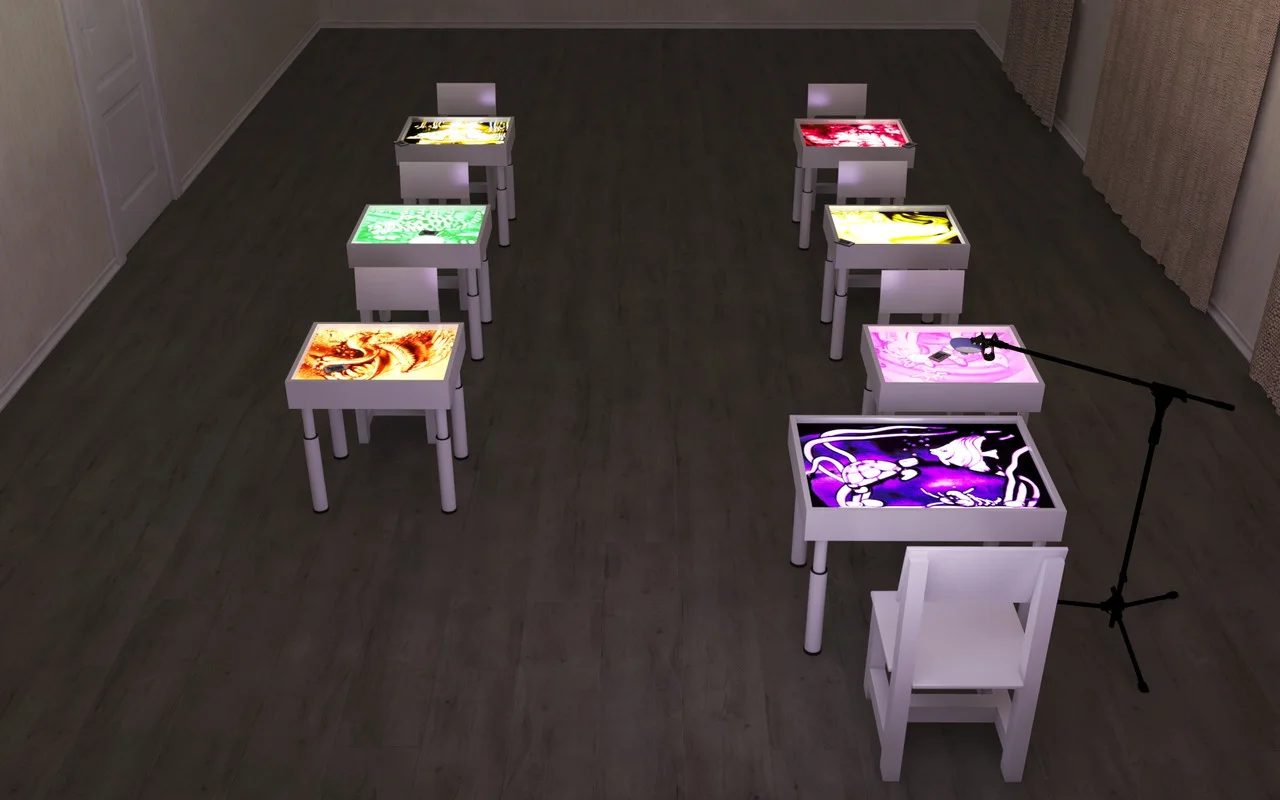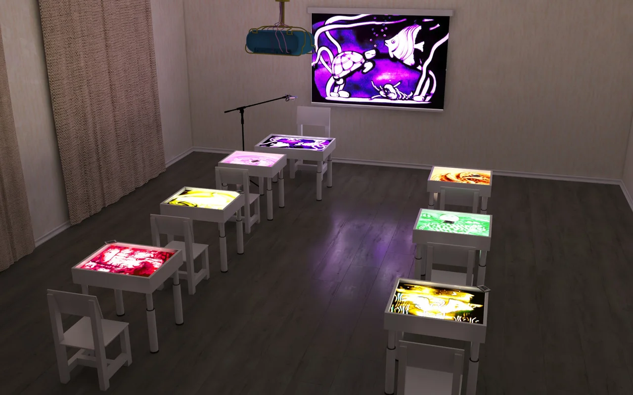 Готовая студия со всем необходимым набором материалов для начала группового творчества! Позволяет работать более чем с шестью детьми. Большой и удобный стол / планшет для учителя. Проста в подключении и установке! Не требует дополнительных затрат.