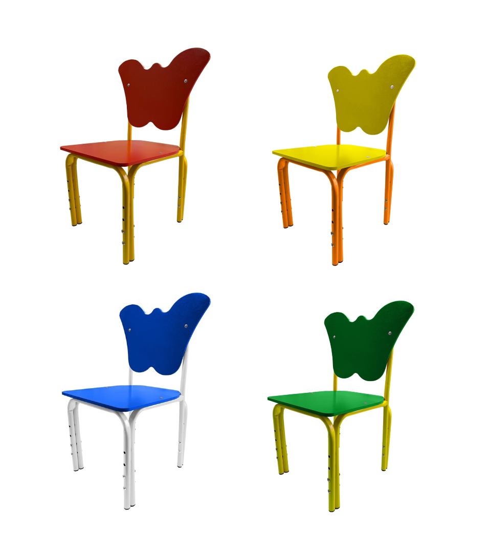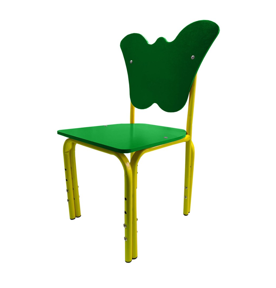 Детские стулья серии «Бабочка» выполнены на основе прочного металлокаркаса из трубы диаметром 16 мм с толщиной стенки 1 мм. Каркас покрыт износостойкой порошковой краской различных цветов, что обеспечивает долговечность стула при активных играх и длительной эксплуатации. Торцы трубы закрыты защитными пластиковыми заглушками.