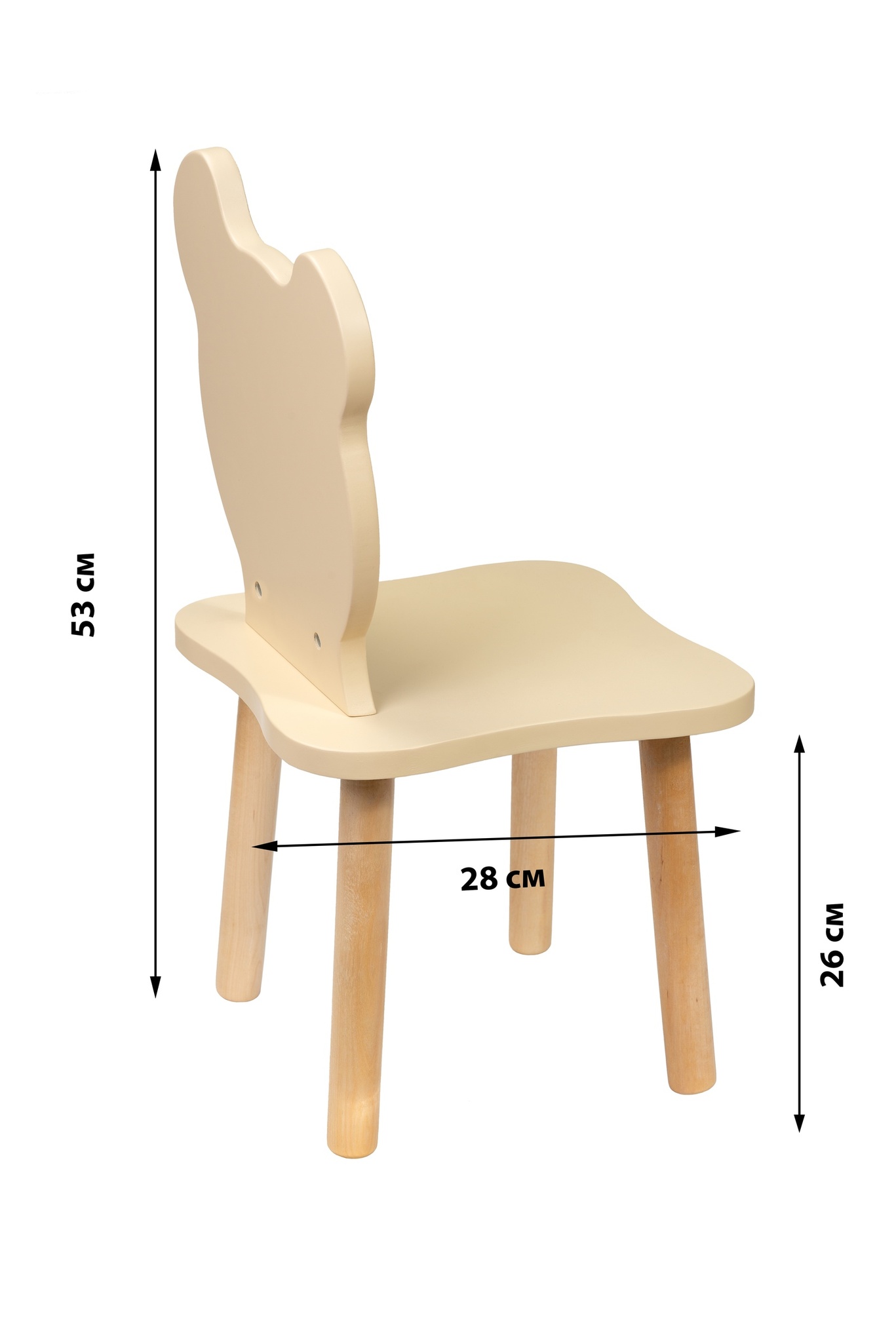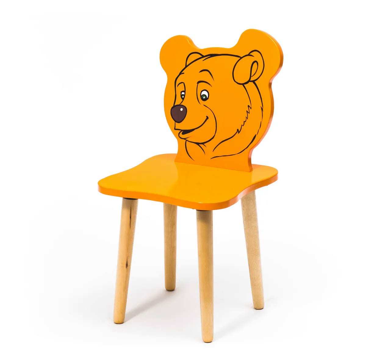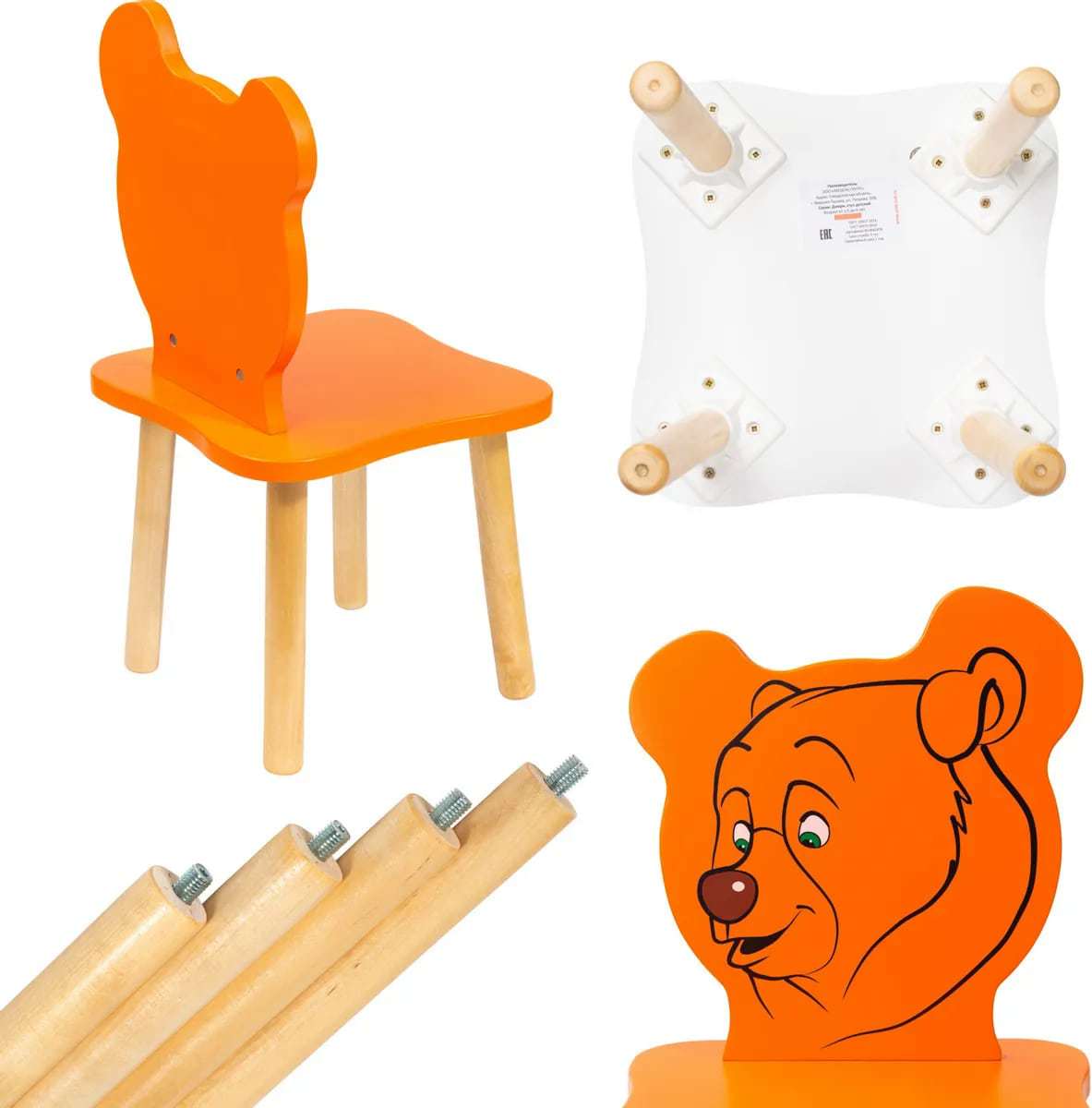 Спинка и сиденье сделаны из экологически чистого материала МДФ, ножки выполнены из натурального дерева – сосна.