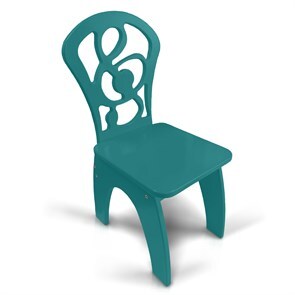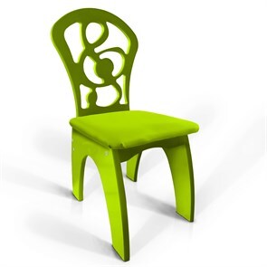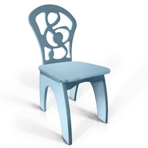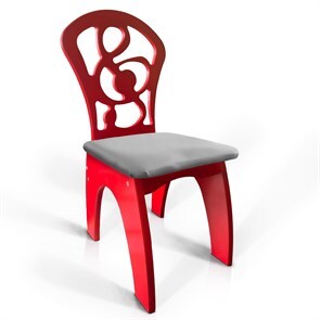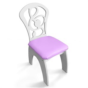 Сиденье мягкое: ППУ и обивка цветной экокожей. Цвет на выбор покупателя. Спинка выполнена с декоративной сквозной фрезеровкой в виде скрипичного ключа.