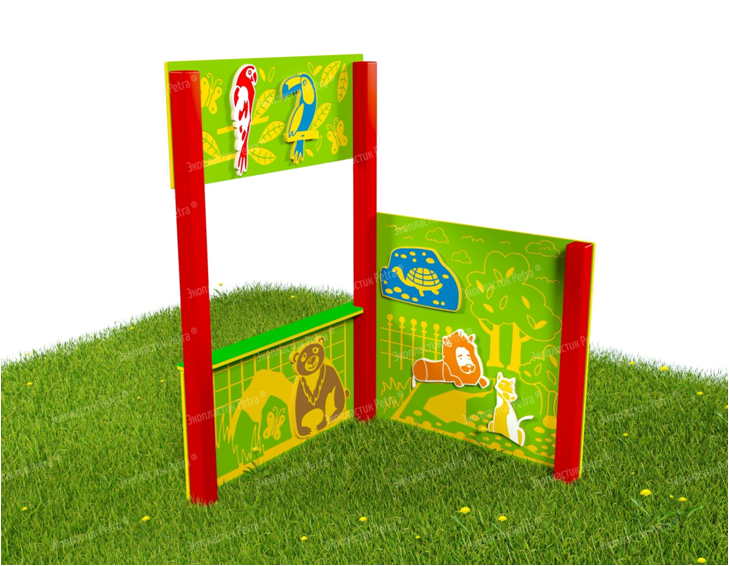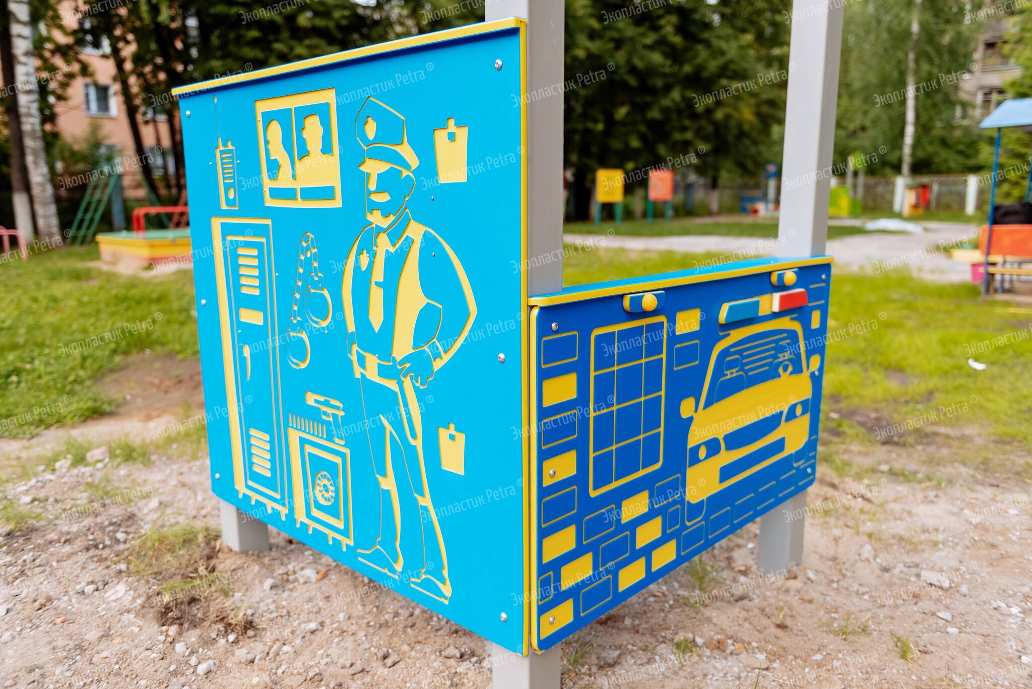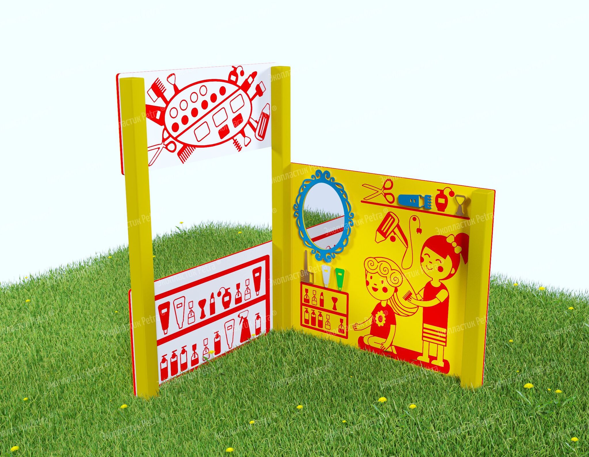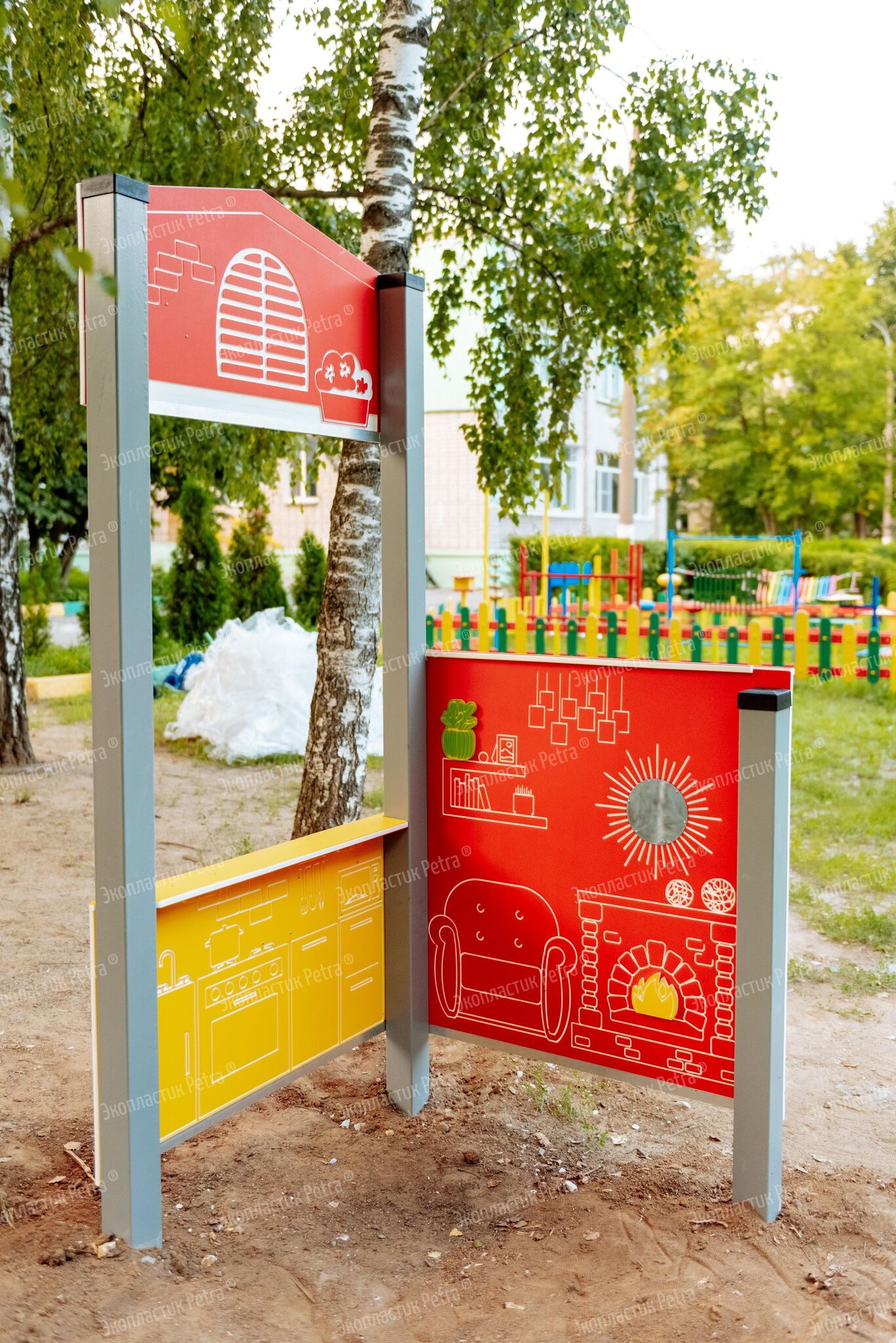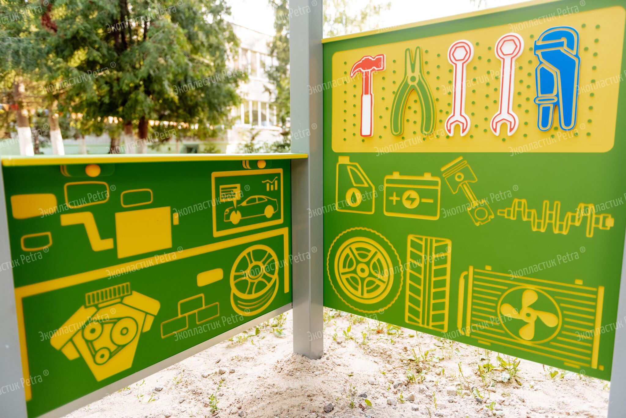 Каждая модель представляет собой угловой модуль, в котором одна стена – окно с вывеской, другая стена – игровая. На игровой стене изображены тематические предметы. Например, в больнице – это стол с медицинскими приборами. Эти предметы либо нарисованы методом гравировки, либо представляют собой объёмные фигуры. Прикосновения к вырезанным на поверхности рисункам и отдельным деталям полезны для детских пальчиков! Это развивает сенсомоторику.