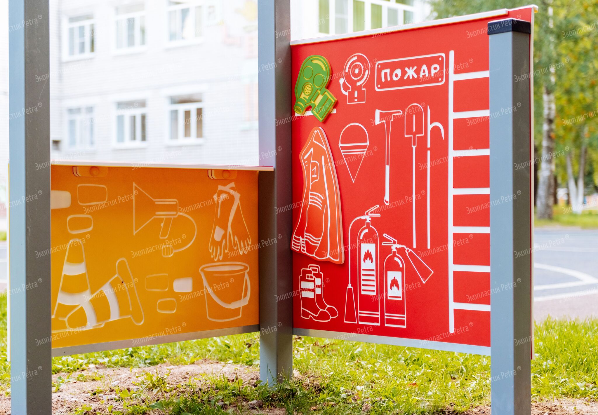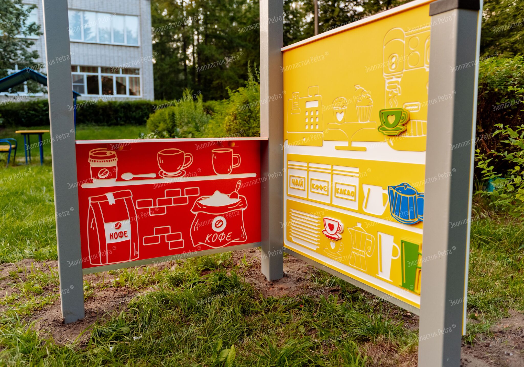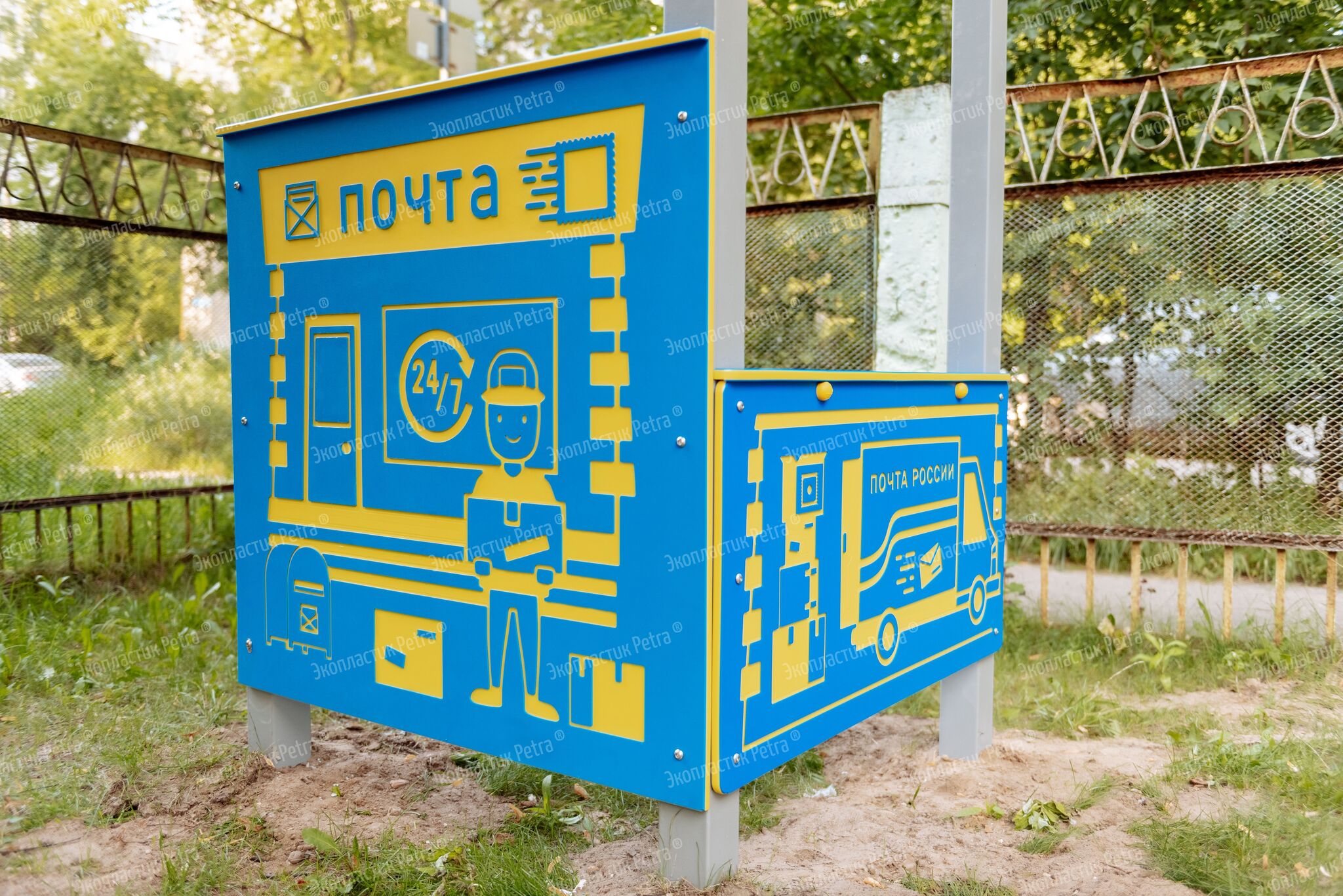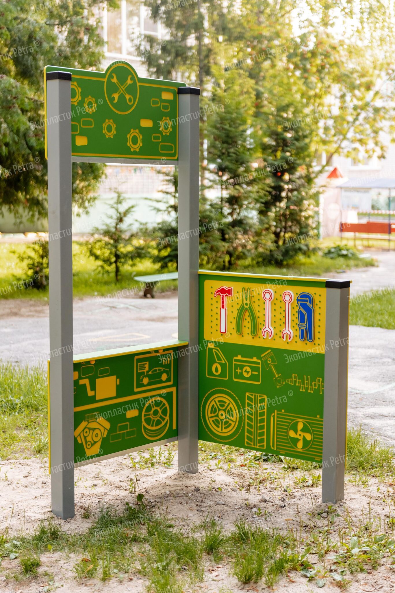Каждая модель представляет собой угловой модуль, в котором одна стена – окно с вывеской, другая стена – игровая. На игровой стене изображены тематические предметы. Например, в больнице – это стол с медицинскими приборами. Эти предметы либо нарисованы методом гравировки, либо представляют собой объёмные фигуры. Прикосновения к вырезанным на поверхности рисункам и отдельным деталям полезны для детских пальчиков! Это развивает сенсомоторику.