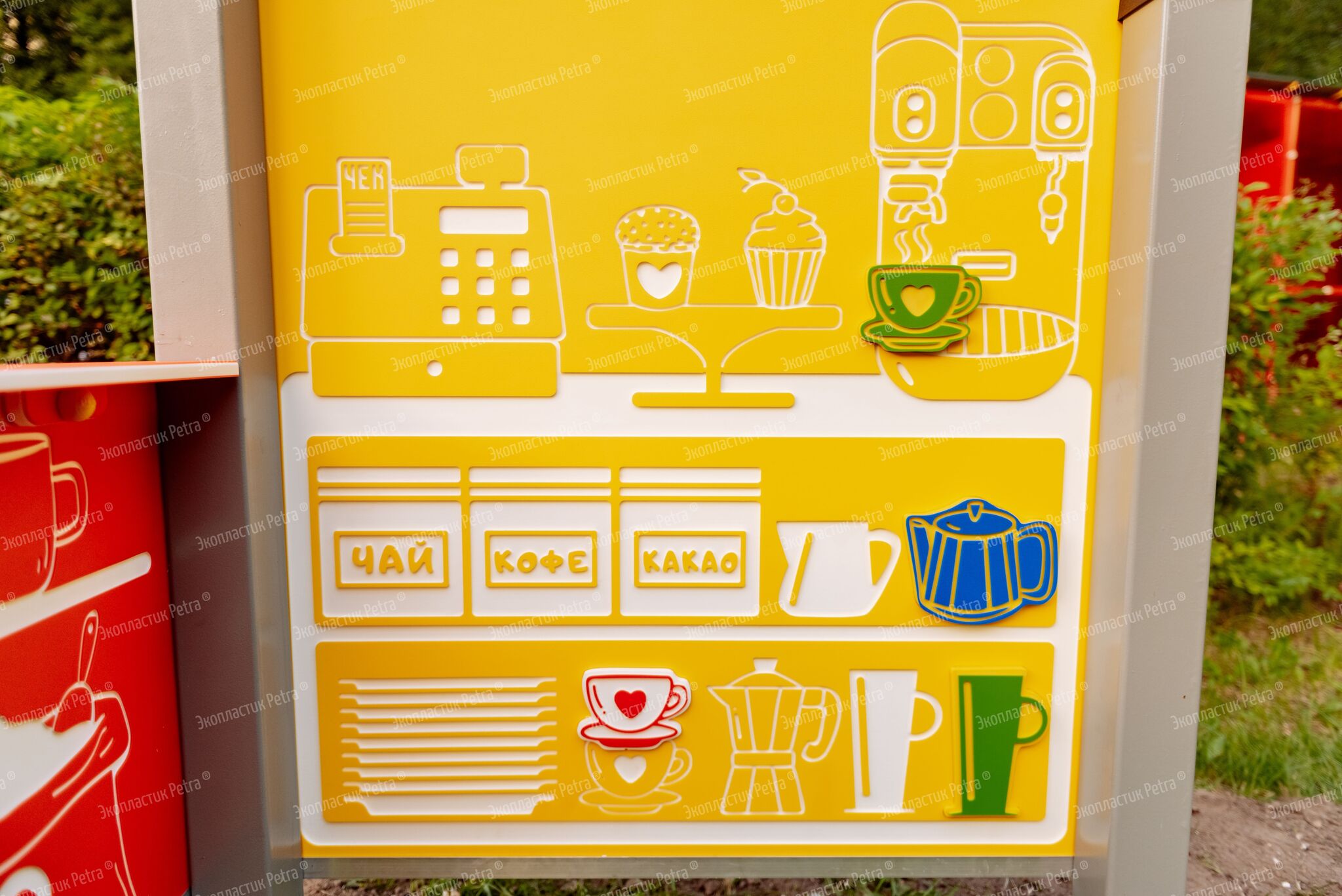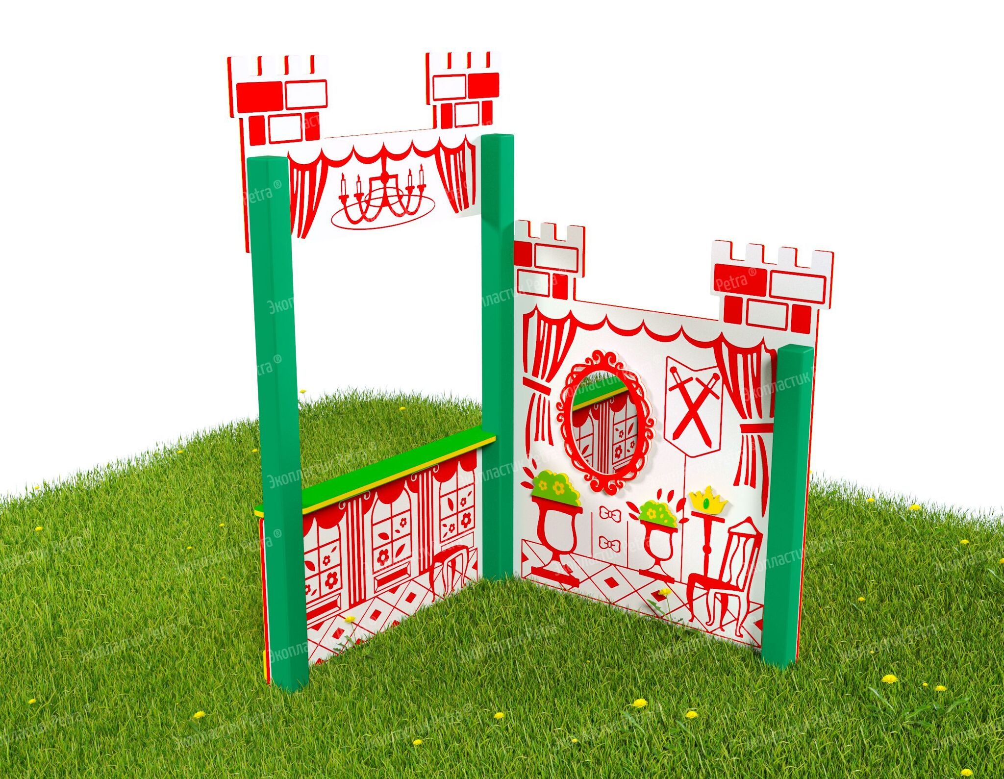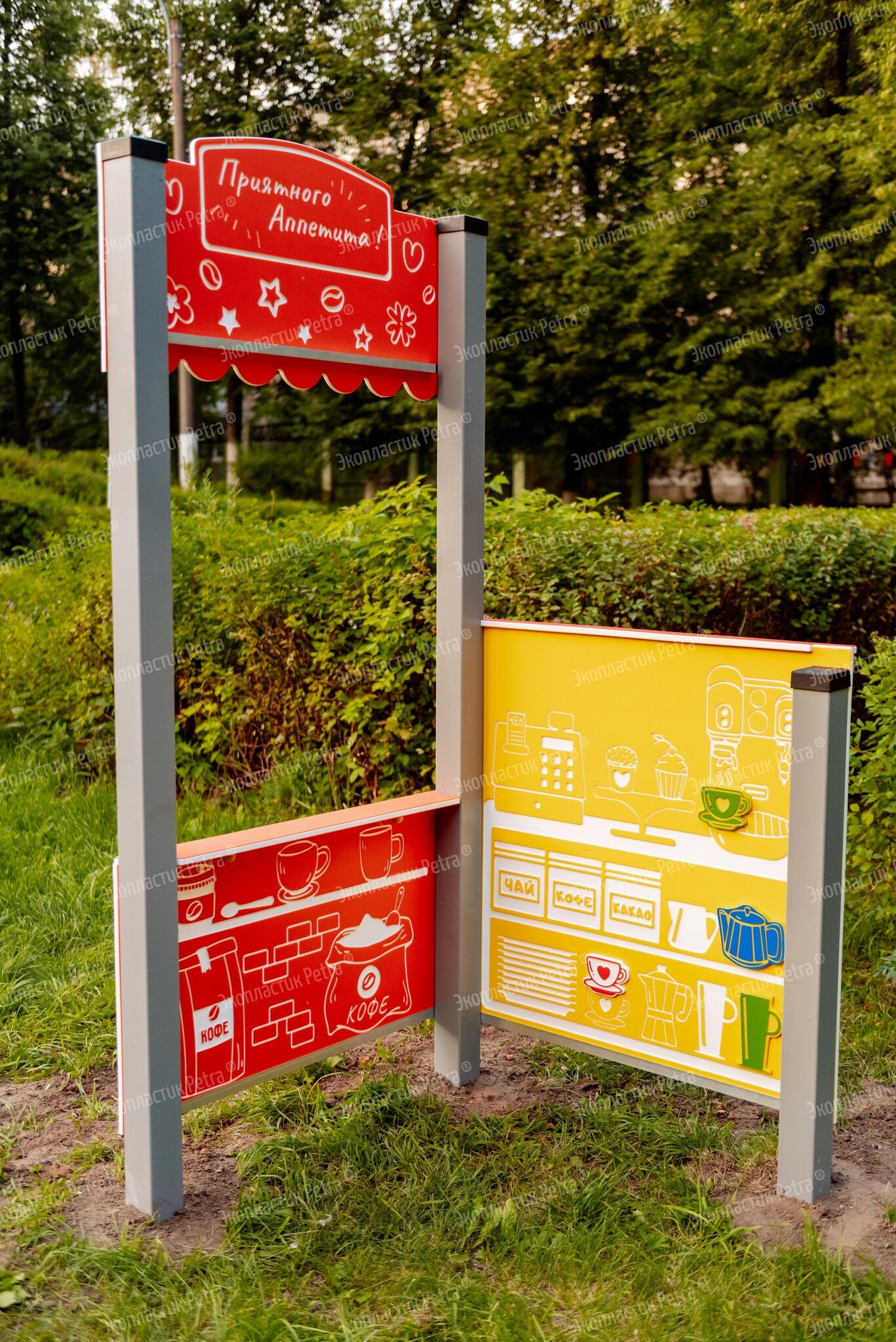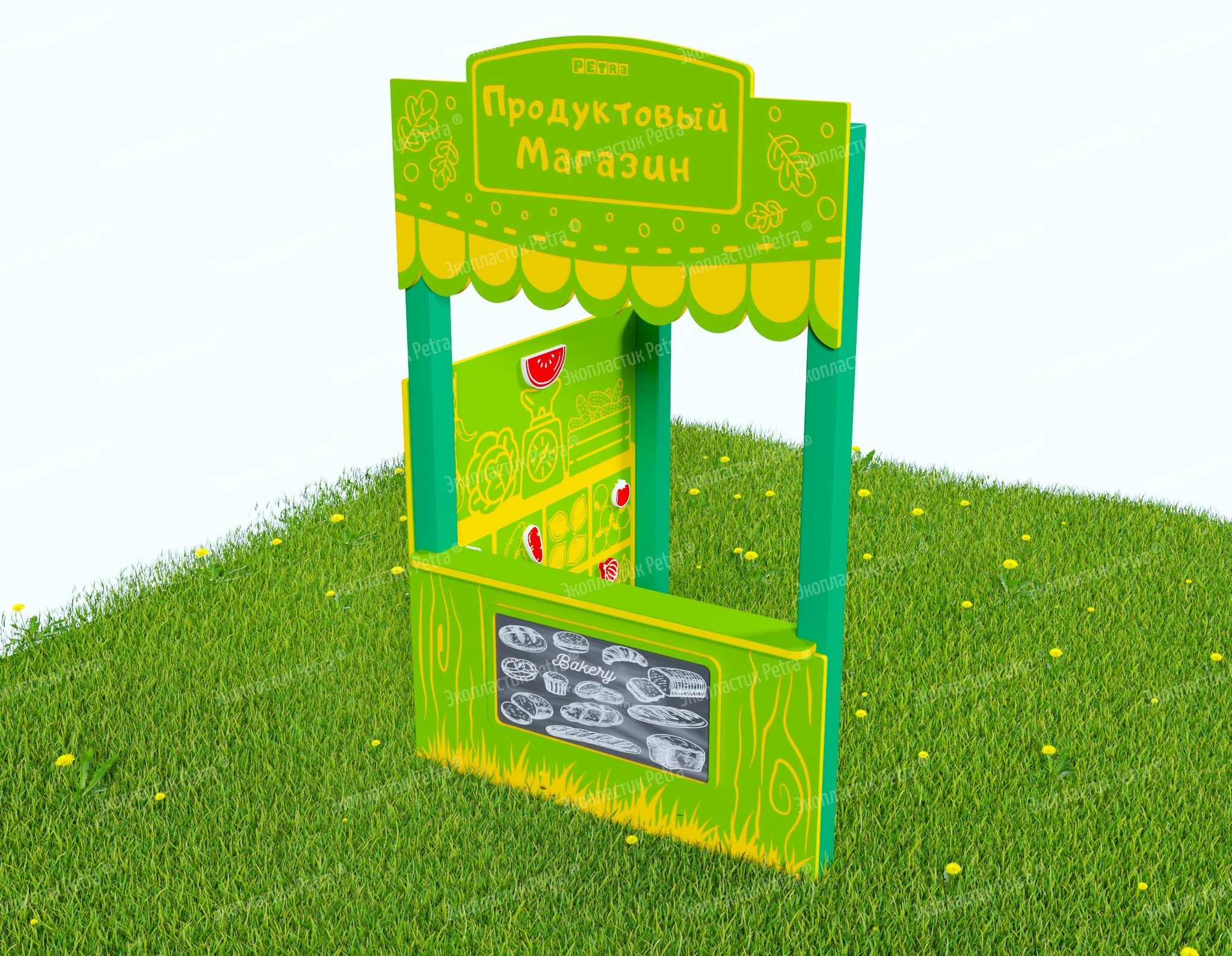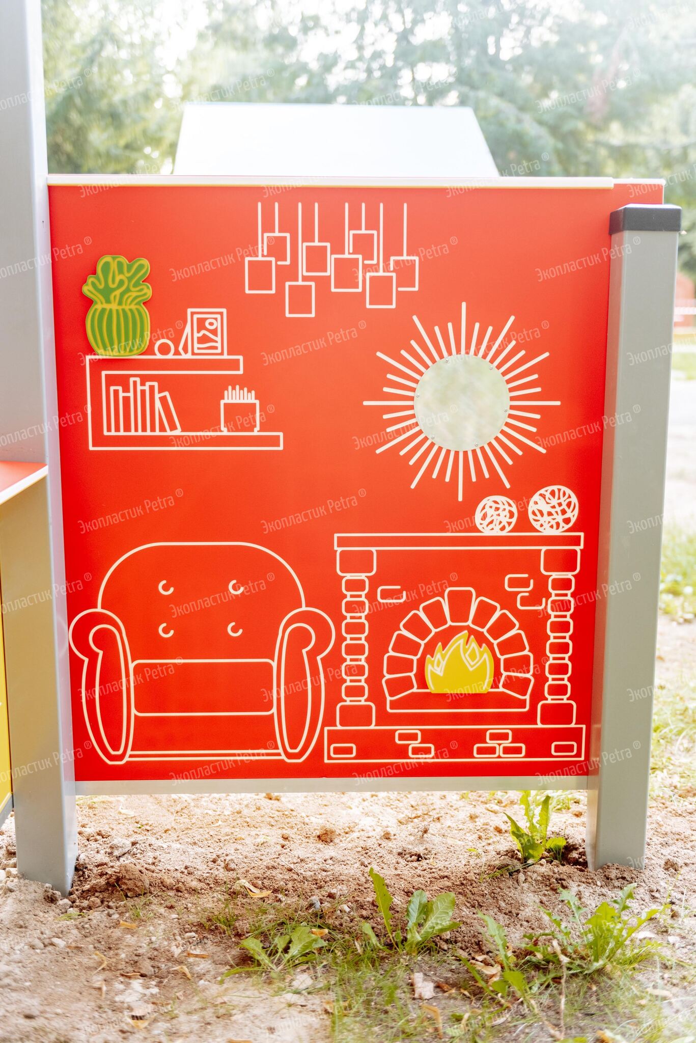 Рисунки, в том числе, есть на лицевой стороне модуля, где указано название модели и предусмотрен оконный проём. Окно позволяет детям выглядывать из своего импровизированного домика или несёт игровую функцию. Например, в продуктовом магазинчике это окно обслуживания покупателей. Также под окном располагается небольшая полка. На неё детишки для удобства могут складывать свои вещи или вовлекать в игру.