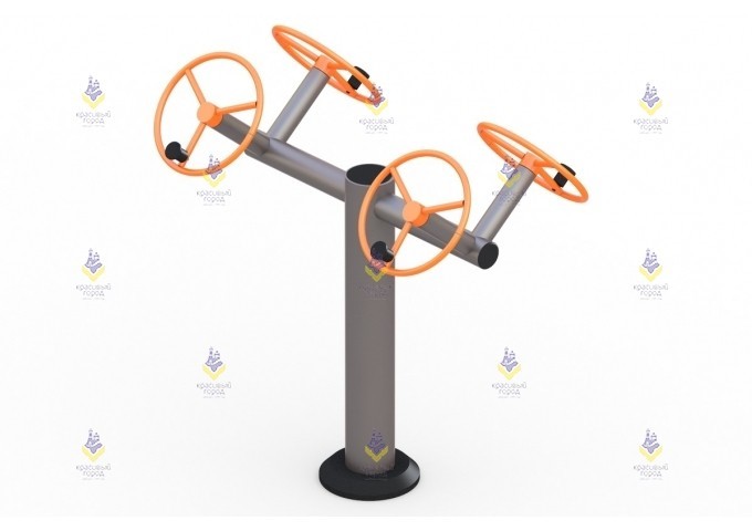 Игровой тренажёр «Рули» помогает развивать моторику рук, тренировать мышцы и суставы. К тренажеру можно подойти и подъехать с любой стороны. Конструкция включает в себя четыре руля, расположенных на такой высоте, чтобы быть удобными для детей-инвалидов в колясках.