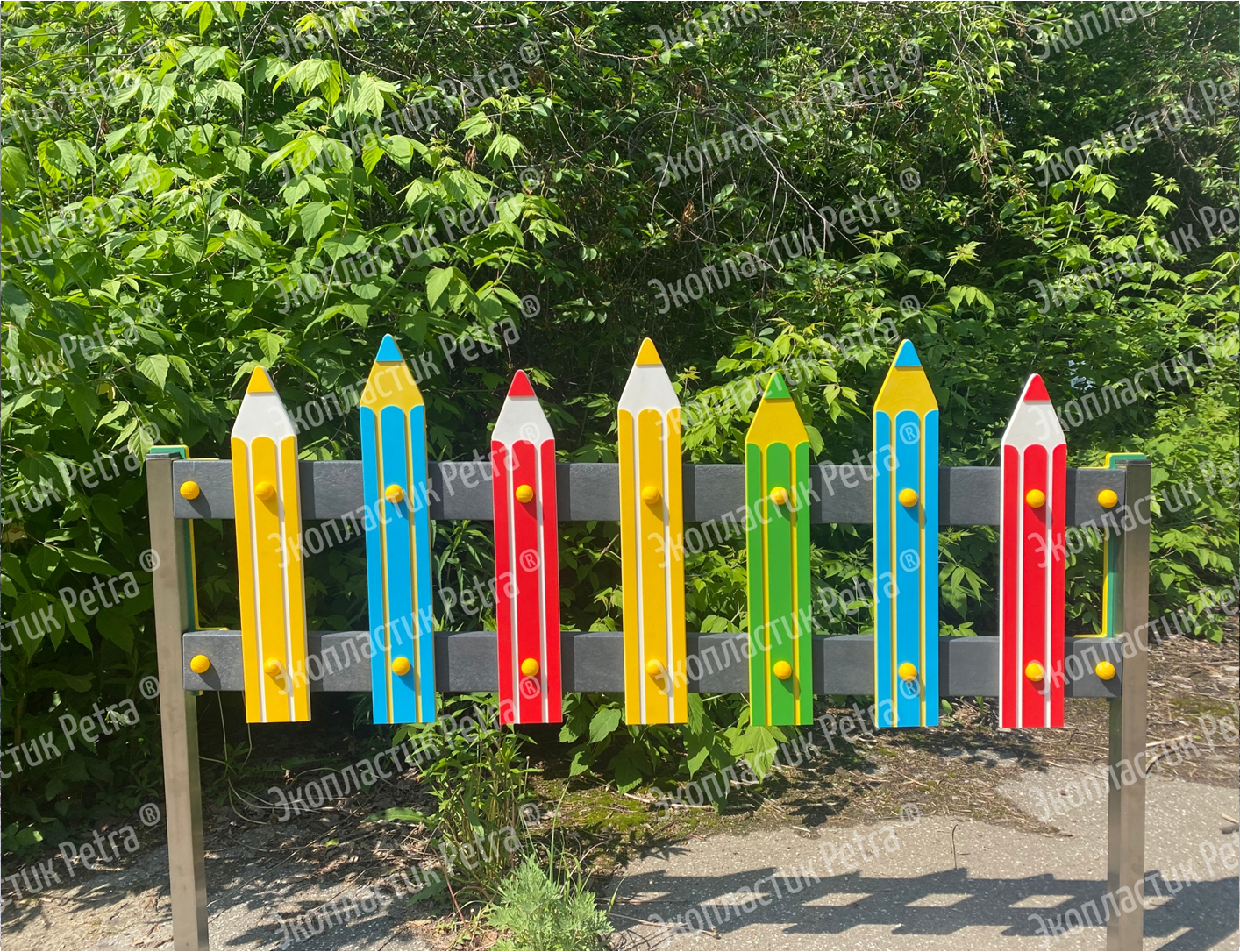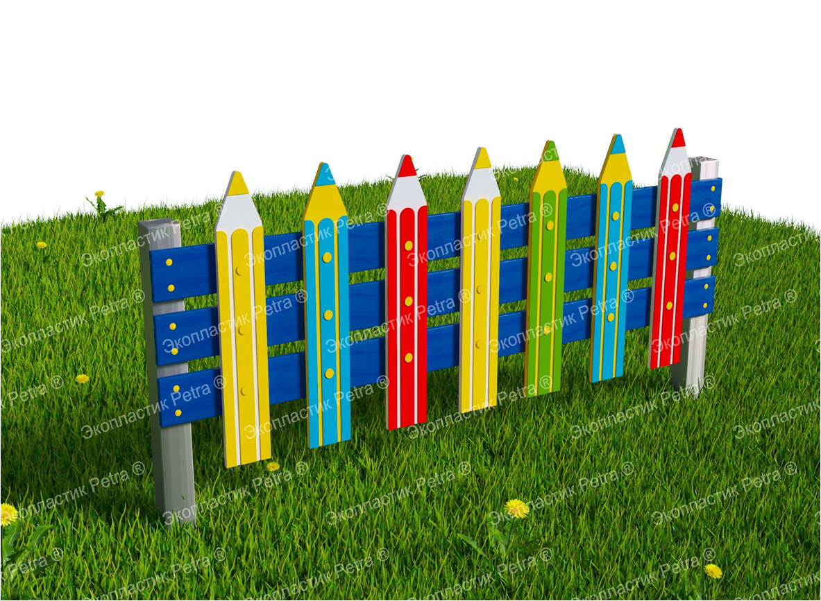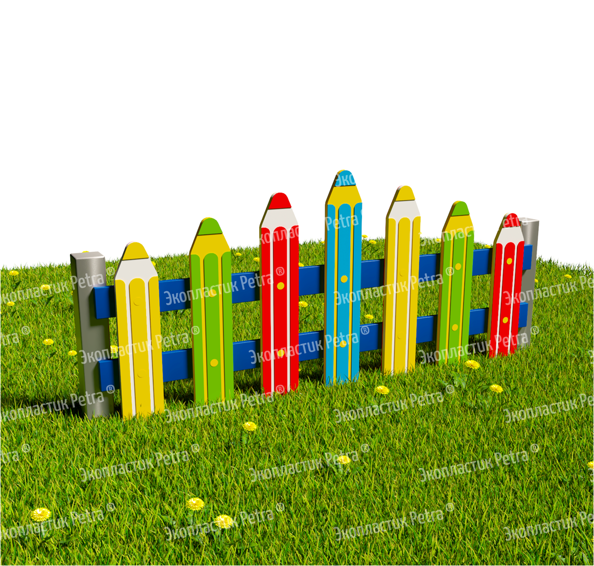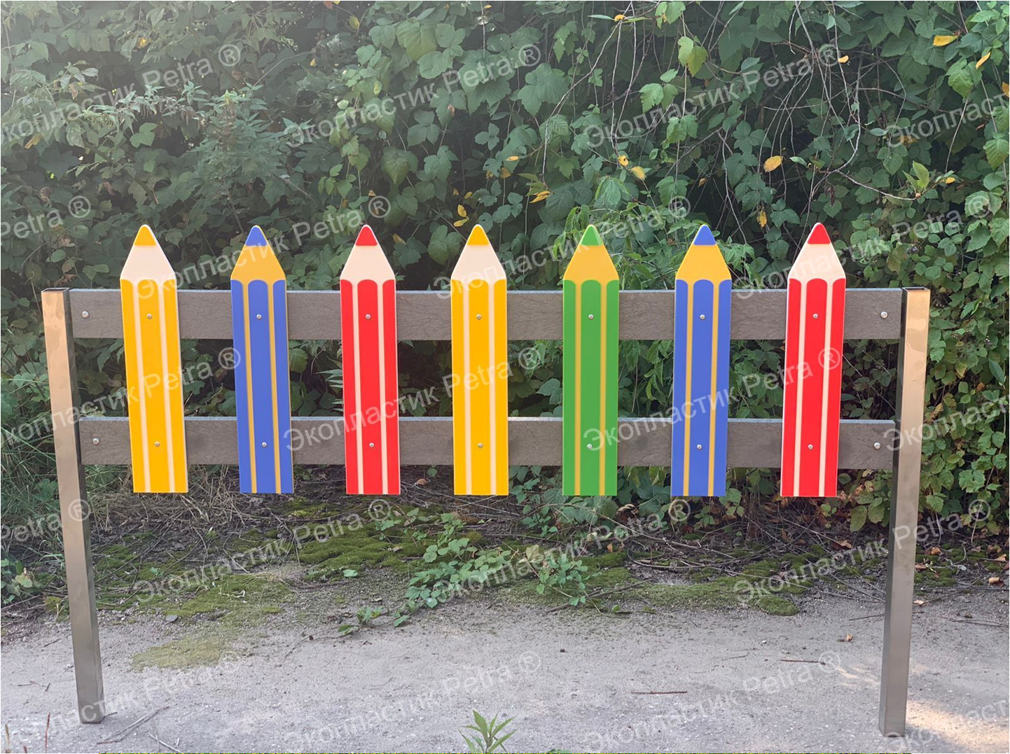 Эти вечные красочные заборчики из экопластика (толщина не менее 15 мм) позволят юным исследователям по-новому взглянуть на привычные предметы окружающего мира. На заборе можно нанести вечные рисунки методом гравировки. Конструкции могут быть оснащены дополнительными элементами из экопластика других цветов.