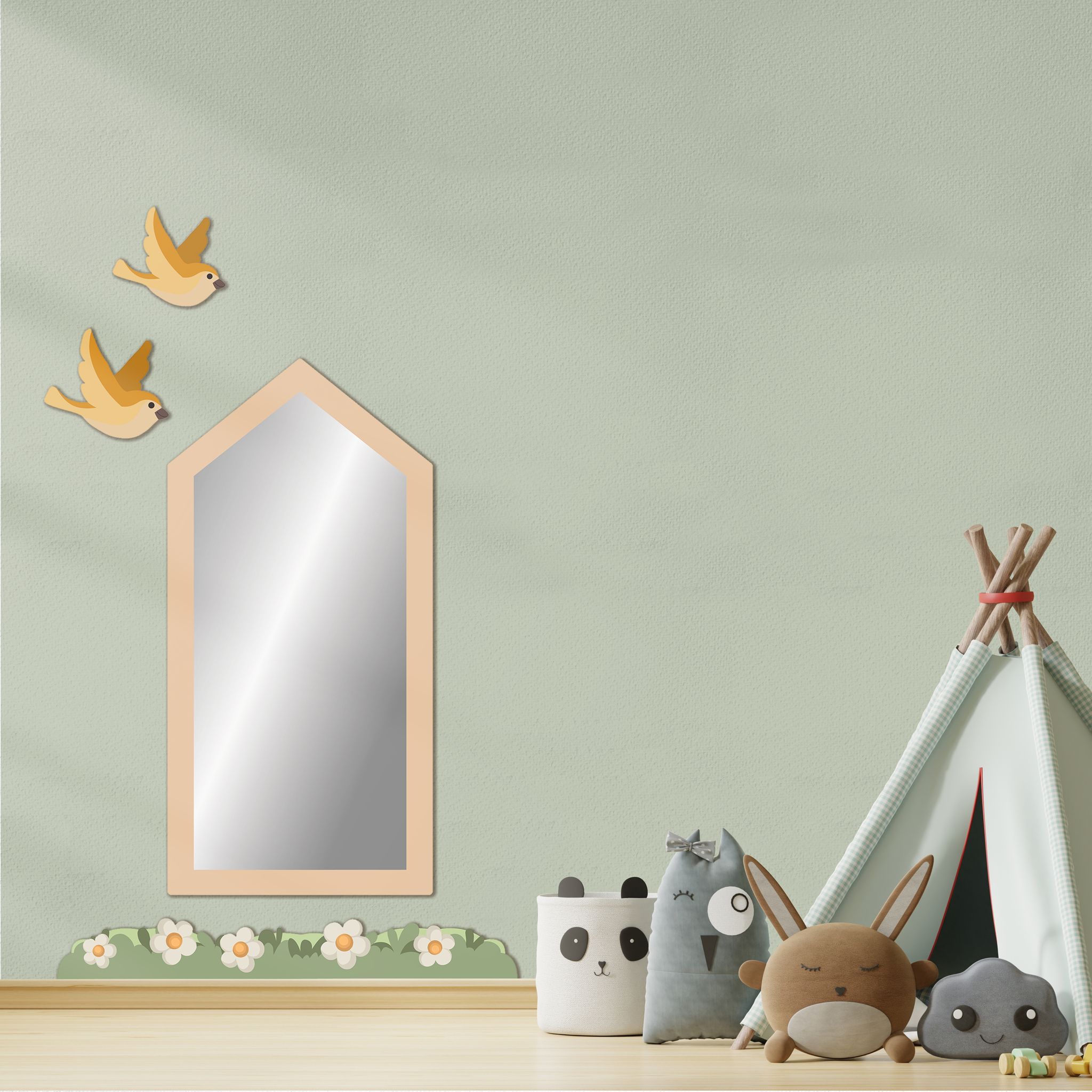 2. Зеркало-домик Скандик розовое с птичками и цветами с ростомером: